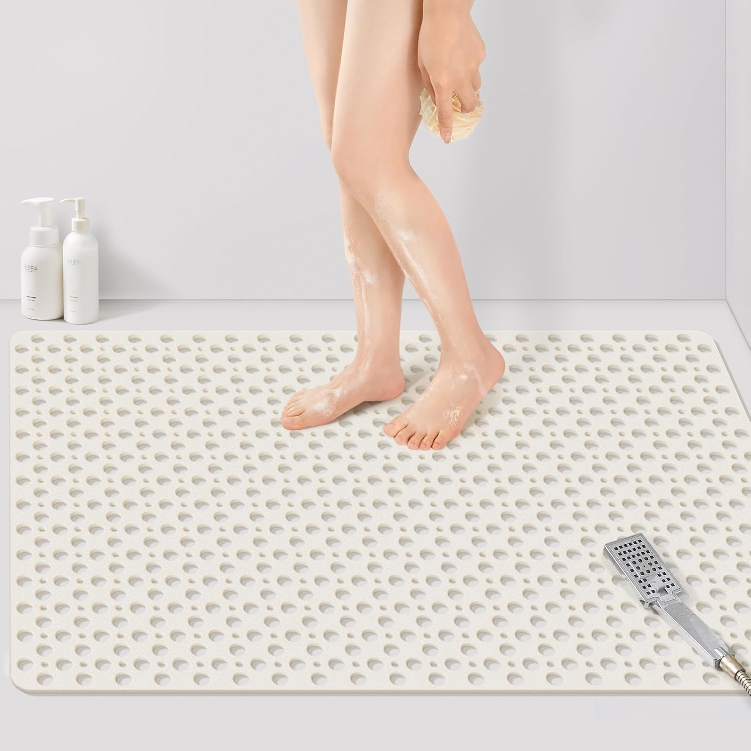 Extra Large Shower Mat Non Slip,47 * 31 Inch Bath Mat for Shower with Big Suction Cups,Oversized TPE Shower Mats for Inside Outside Shower,Perfect for Elderly