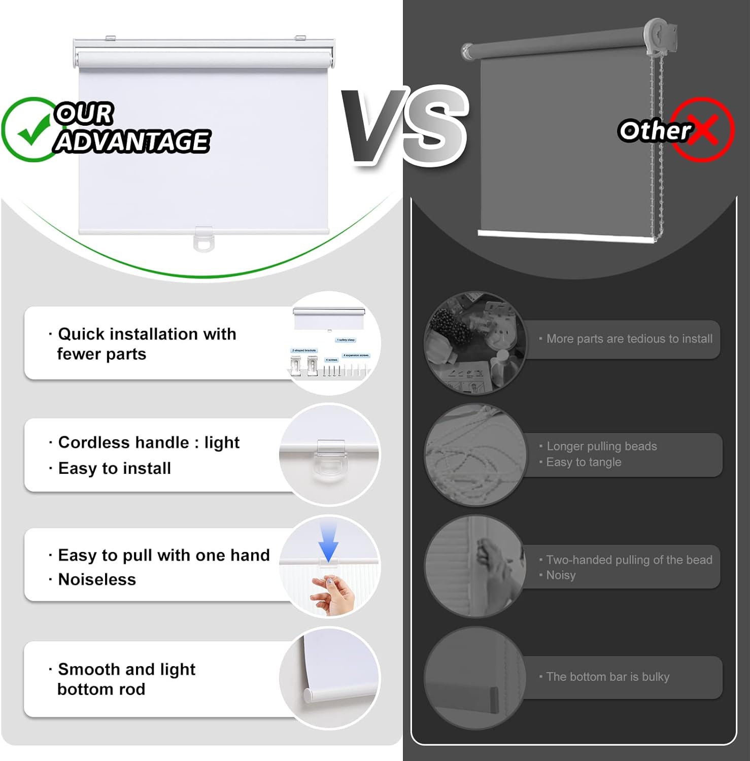 AOSKY Blackout roller shades offer your complete darkness from morning to night, balance the temperature by darkening room. Bringing you a good day.