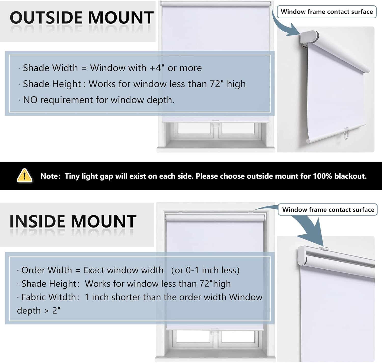 Note: Tiny light gap will exist on each side. please choose outside mount for 100% blackout!