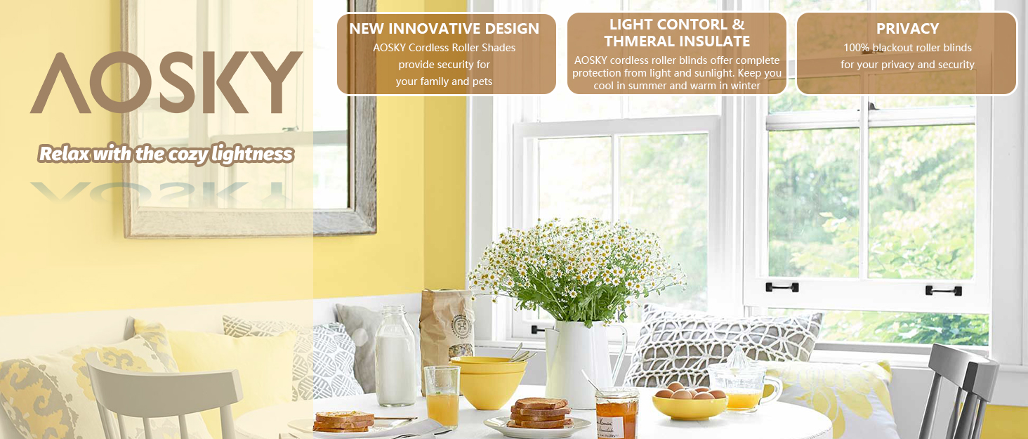 AOSKY blackout roller blinds are made of oil-resistant coated fabric, which is water resistant and easy to clean.