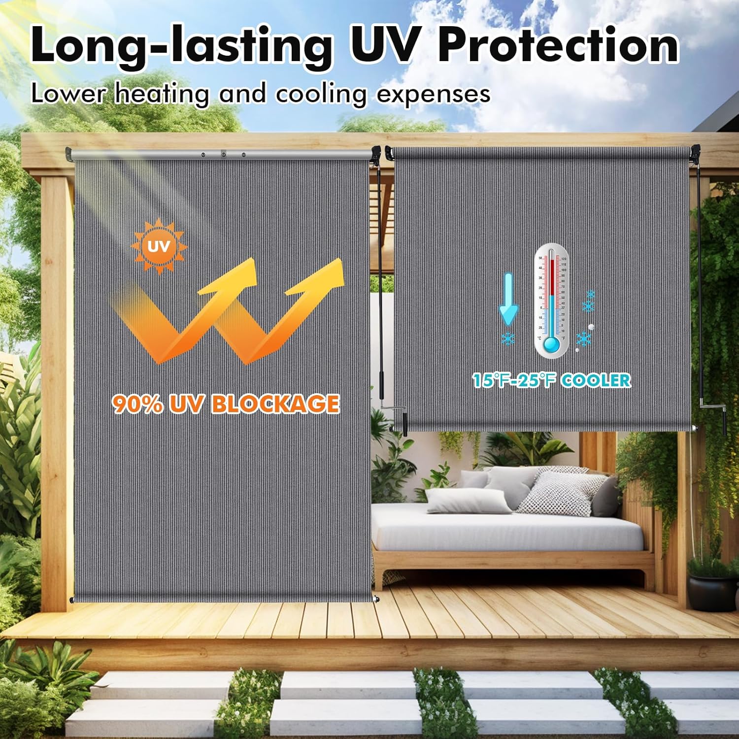 Artpuch Outdoor Roller Shade 6' W x 8' H, Gray Exterior Cordless Patio Shades Roll Up Blinds with Spliced Pole Design, (2 Poles, One-Piece Fabric)
