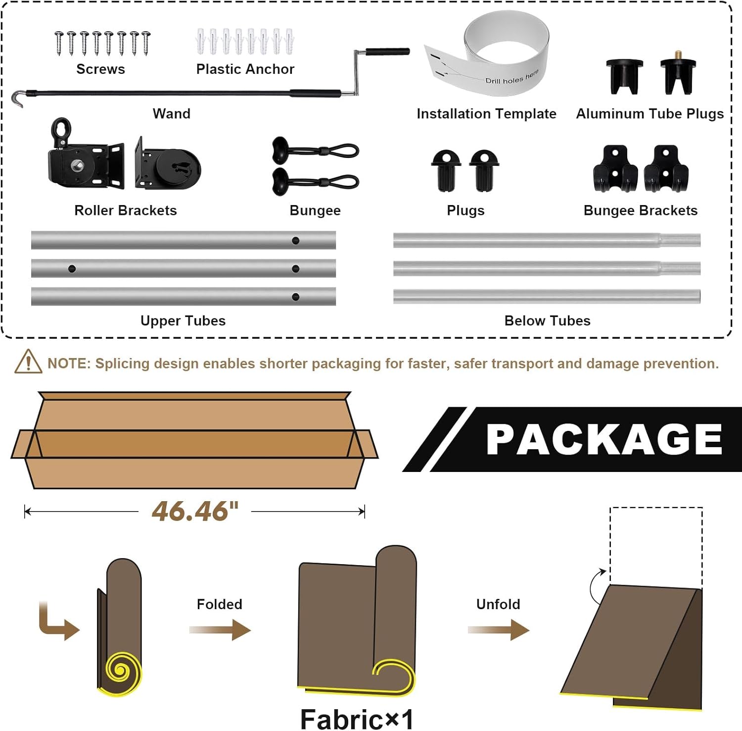 Artpuch Outdoor Roller Shades with Splicing Design, 10' W x 8' H Exterior Cordless Patio Shades Roll Up Blinds for Porch, Gazebo, Pergola, Balcony, Grey