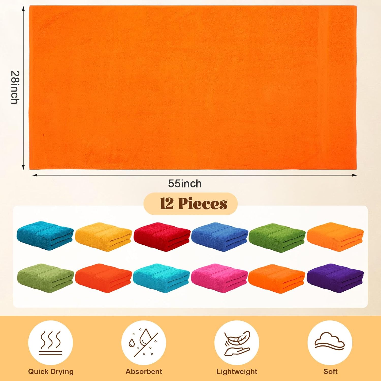 Newwiee Set of 12 Bath Towels Bulk - 28 x 55 Inch Large Cotton Towels in 12 Colors, Soft Quick-Dry Lightweight Bathroom Towel for Home Pool Beach Spa Hotel Gym Use(12 Colors)