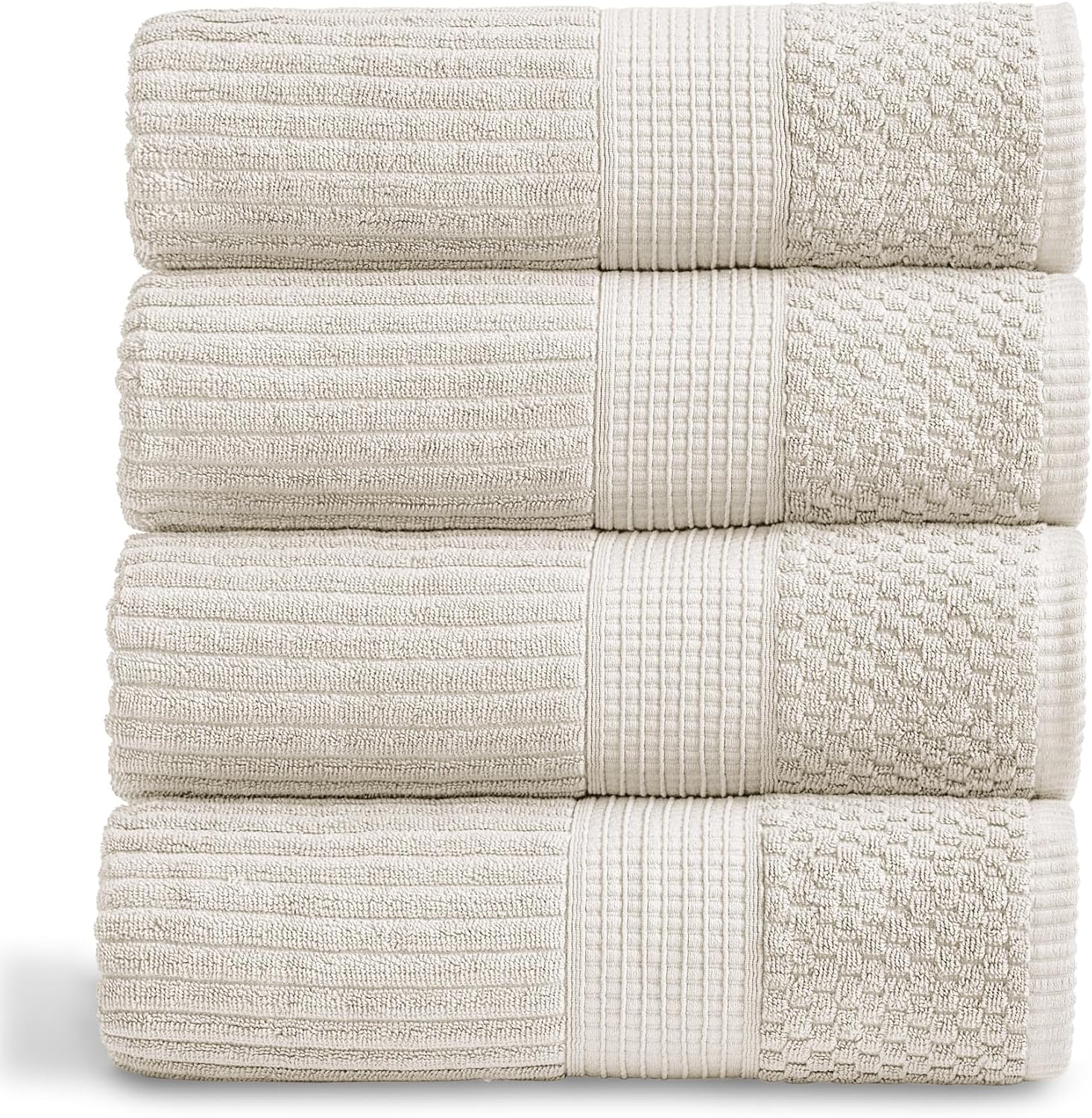 Springtree Home 100% Cotton Bath Towel Set of 4 | Super Soft & Absorbent with Quick-Dry Fibers | 4 Bath Towels | Textured and Durable Cotton | Krista Collection - Bright White